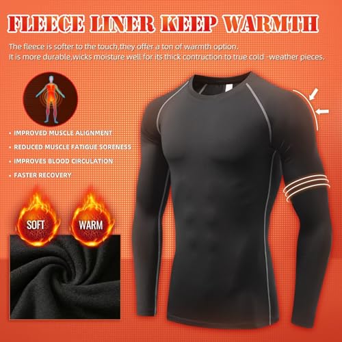 Sillictor Mens Thermal Top for Ski Hiking Cycling Fleece Lined Winter Base Layer Mens Long Sleeve Quick Dry Compression Underlayer for Football Running,Moisture Wicking Breathable Muscle Support