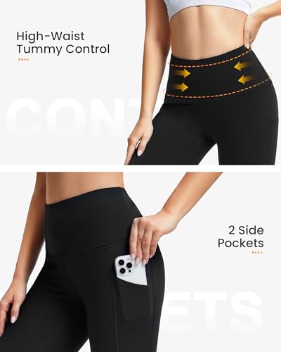 SIMIYA Womens Sports Leggings High Waist Cropped Leggings with Pockets 3/4 Length Capris Pants Sports Gym Workout Running Yoga Pants