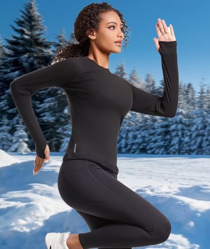 Thermal Tops Womens Fleece Lined Base Layer Top Undershirt Ladies Long Sleeve Underwear Soft Winter Warm Casual Fashion Shirt
