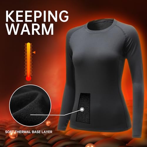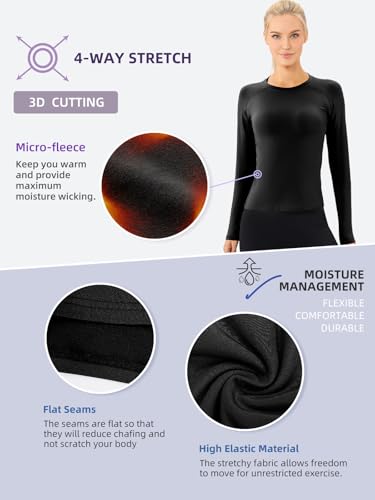Thermal Tops Womens Long Sleeve UPF50+ Ski Base Layer Women Soft Quick Dry Thermals Stretchy Micro Fleece Ladies Gym Running Sports Tops