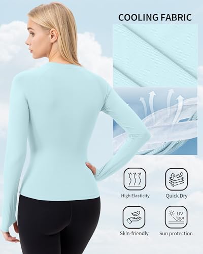 【UV Sun Protection Long Sleeve Running Top】The womens rash guards provides UPF 50+sun protection, effectively blocking harmful UVA and UVB rays from shining on the skin. The smooth and flat stitching is skin friendly, durable and not easily torn