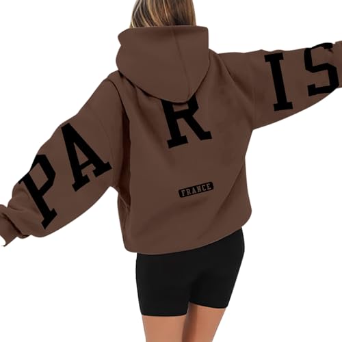 HUIFUAO London Hoodies for Women UK Oversized New York Paris California Sweatshirts Funny Back Letter Print Pullover With Pocket Trendy Long Sleeve Tops Streetwear