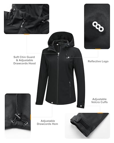 33,000ft Women’s Softshell Jacket Waterproof Windproof Coat Functional Lightweight Windbreaker Ladies Breathable Outdoor Jacket with Hood for Running, Cycling, Hiking