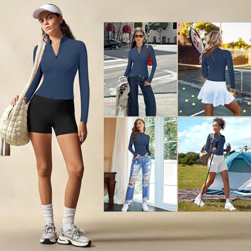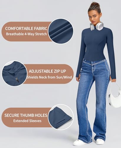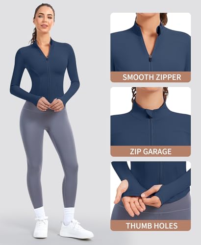 JoyGirl Womens Running Jacket Long Sleeve Cropped Workout Yoga Sport Tops Lightweight Athletic Zip Up Gym T-Shirt with Thumb Holes