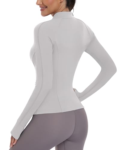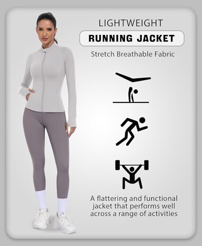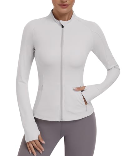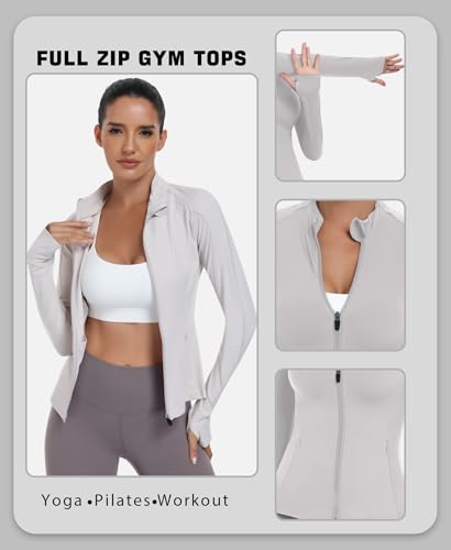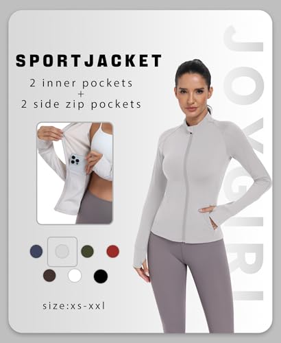 JoyGirl Womens Zip Up Sport Running Jacket with Pockets Long Sleeve Workout Jackets Slim Fit Gym Yoga Tops with Thumb Holes