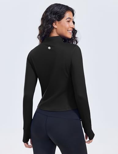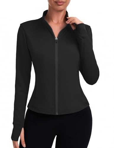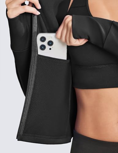 PINSPARK Women’s Full-Zip Sports Jacket Short Slim Running Jacket with Thumbholes Long-Sleeved Sportswear with Zipper Pockets