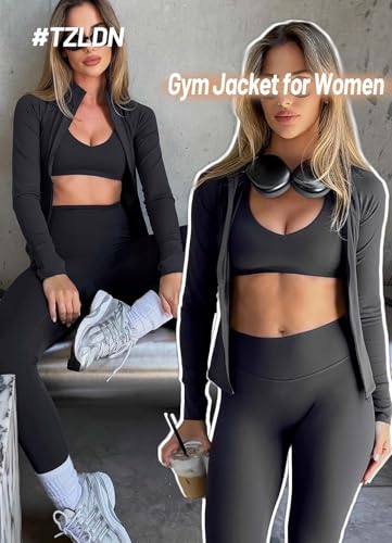 TZLDN Gym Jackets Women Zip Up Sports Running Jacket Gym Top Long Sleeve Cropped BBL Jacket Gym Wear Fitness