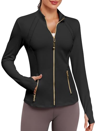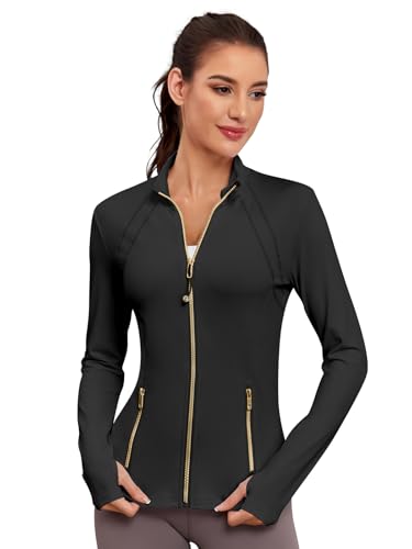 VUTRU Women Athletic Jacket Fitted Workout Running Zip Up Track Coat Layer with Thumb Holes Pockets for Yoga Gym Travel