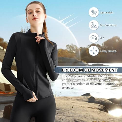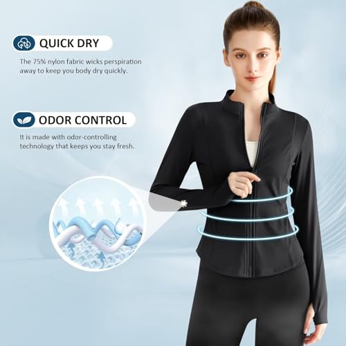 Women Gym Jackets with Pockets Thumb Hole Running Top Womens Long Sleeve Zip UP Shirts for Sports Workout Athletic,UPF50+ Quick Dry Slim Fit