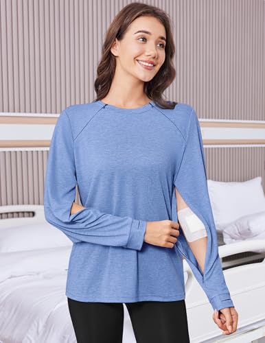 Deyeek Chemo Shirts for Port Access Women Long Sleeve Shoulder Post Surgery Shirt Dialysis Sweatshirts with Arm Zipper