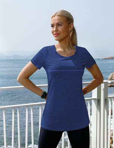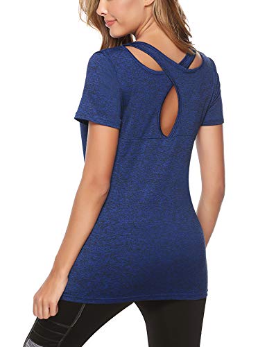 iClosam Women’s Tunic T-Shirt Gym Top for Running Athletic Clothes Casual Wear Yoga Workout Short Sleeve Crew Neck, Dark Gray, UK Size – S: 6-8