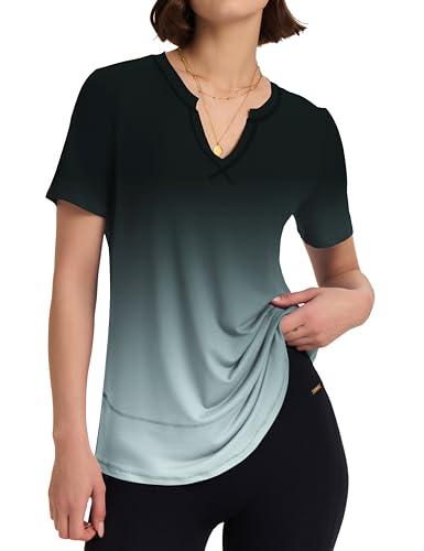 Kistore Gym Tops for Women UK Short Sleeve Gym Wear Women V Neck T-Shirts Loose Fit Gym Clothes S-XXL