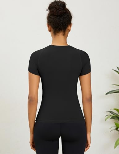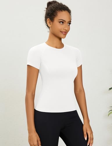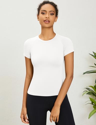 Rapbin Womens Gym Tops Workout Running Yoga Sports Shirts Short Sleeve Athletic Exercise Quick Dry Breathable T-Shirt