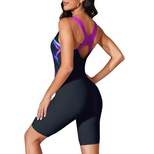 Sports Swimming Costume with Shorts Women One Piece Boyleg Swimsuit Athletic Racerback Modest Swimwear