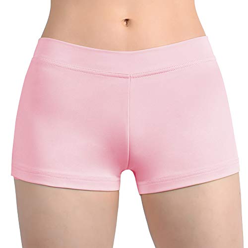 SUPRNOWA Low Rise Boy Cut Shorts for Women Athletic Spandex Gym Workout Booty Volleyball Yoga Dance Shorts (Pink, M)