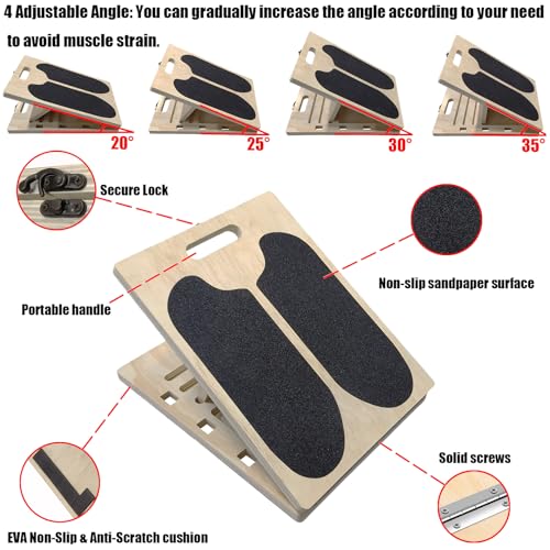 2-in-1 Wooden Balance Board & Slant Board, Non-Slip Calf & Hamstring Stretcher, Adjustable Incline Ramp for Heel Elevated Squat, Deadlift, Yoga, Pilates, Physical Therapy, Balance Training
