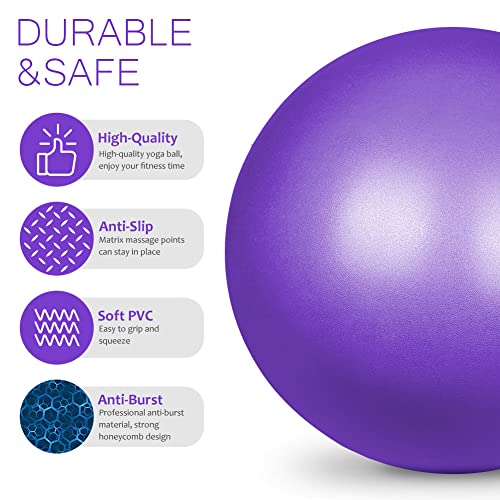 flintronic 25CM Mini Pilates Ball, Small Anti Burst Exercise Ball for Yoga, Pilates, Balance, Physical Therapy, Stretching and Core Fitness – Includes Stability Ball Workout Guide