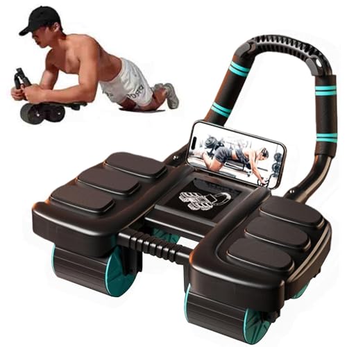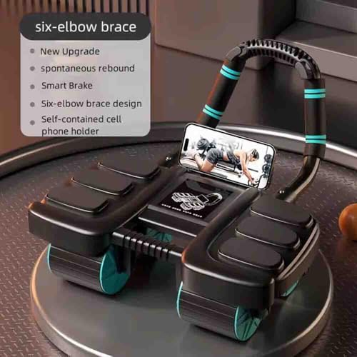 Ab Roller Exercise Wheel New Abdominal Wheel Roller with 6 Elbow Supports, Automatic Rebound Home Gym Equipment for Core Training with Built-in Phone Holder, Fitness Accessories for Men and Women