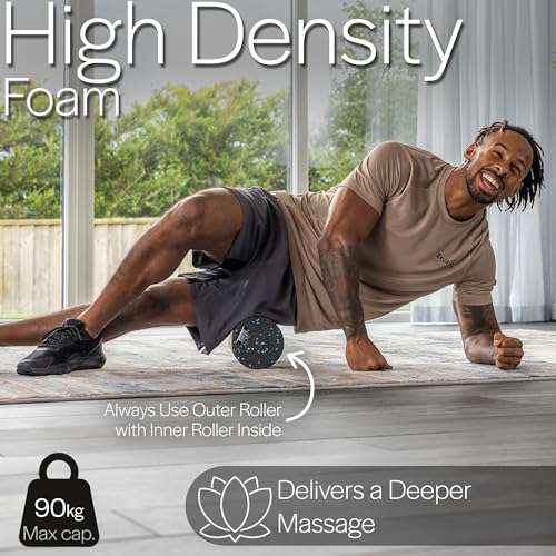 INNER ROLLER TO TARGER SMALLER MUSCLES: The inner roller has a diameter of 6cm (2.3-inches) and is a similar thickness to a massage stick. This allows you to comfortably hold it with both hands. This allows you to target muscles that the main roller is too thick to reach, such as your arms and neck. It’s also great for rolling your calves and the top of your thighs.