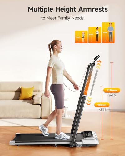 12% Incline Folding Treadmill with Adjustable Retractable Handrail, 6 in 1 Compact Treadmills for Home/Office, Under Desk Treadmills Portable Walking Pad with App, Remote & LED Display