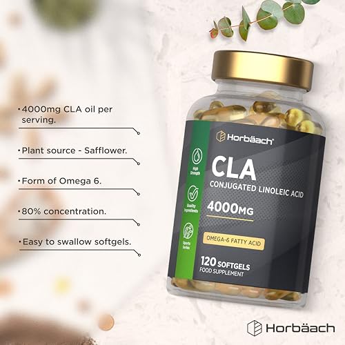 CLA Capsules 4000mg | 120 Softgels | High Strength Supplement | Conjugated Linoleic Acid Oil from Safflower | Suitable for Men & Women | by Horbaach