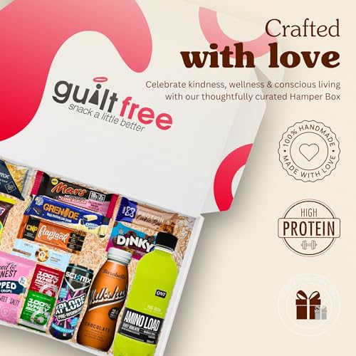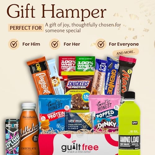 Healthy Snacks Gift Hamper 1.6KG Protein Hamper Gifts for Women and Men Low Calorie Snacks, Protein Bars, Cookies, Drink, Flapjack, Crisps Gym Gift Treat Box High Protein Selection Box by GuiltFree