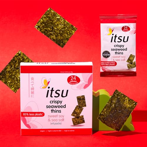 itsu Sweet Soy & Sea Salt Flavour Seaweed Thins 5g | Crispy Seaweed Snacks | Vegan | Low Calorie | Healthy Snack | Pack of 32