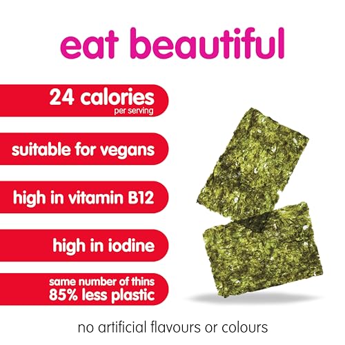 Discover the deliciously crispy itsu Sweet Soy and Sea Salt Seaweed Thins, now in a NEW larger 32-pack. These seaweed thins are vegan and low calorie, perfect for a quick, nutritious snack. Committed to sustainability, and after much trial and error, itsu has removed the plastic tray from our seaweed thins, maintaining food safety whilst reducing plastic use and aligning with our sustainability goals. Same great taste, now with less environmental impact. Each 5g serving is packed with essential nutrients, high in vitamin B12 and iodine, with only 24 calories per pack. Suitable for vegans, these seaweed thins are free from artificial flavours, colours, preservatives, and added MSG Enjoy itsu Sweet Soy and Sea Salt Seaweed Thins on their own or add them to salads and dishes for an extra burst of texture and flavour. A simple and delightful way to eat beautifully, anytime, anywhere. Since 1997, itsu has been dedicated to serving healthy, Asian-inspired dishes in their 70 award-winning restaurants. Now, with itsu [grocery], we bring our beloved flavours to supermarkets, health food stores, and online shoppers worldwide. From crispy seaweed thins to frozen gyoza, brilliant broths, miso easy, and rice noodles, itsu offers a range of products that make eating beautifully easy and accessible. Savour the taste of Korean with its Sweet Soy and Sea Salt Seaweed Thins.