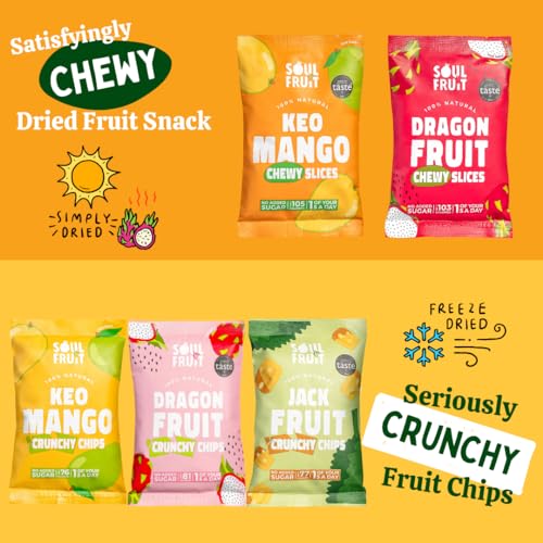 Soul Fruit Discovery Box – Dried Fruit & Freeze Dried Fruit Snacks – Dragon Fruit, Mango, Jackfruit – No Added Sugar – Low Calorie – Lunchbox Snacks – Healthy Snacks for Adults & Kids – 10 x 30/20g