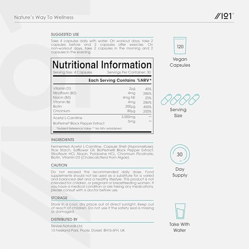 L-Carnitine 3000mg with BioPerine – 120 Vegan Capsules – Energy & Metabolism Support – High Strength Acetyl L-Carnitine Complex (1 Month Supply) by Alpha01