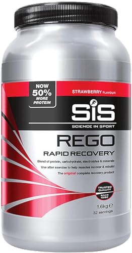 Science In Sport REGO Rapid Recovery Drink Powder, Post Workout Protein Powder, 20g of Protein, Strawberry Flavour, 32 Servings Per 1.6kg Bottle