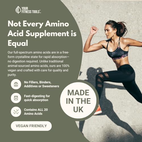 Vegan BCAA Amino Acids: Made from fermented enzymes which means NO animal products used. Our vegan EAA amino acids do not contain any Gluten, excipients, binders, colouring, artificial preservatives or GMO.
