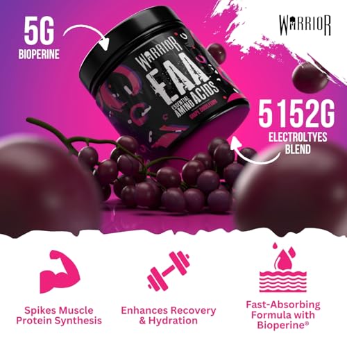 Warrior EAA Amino Acids Powder, 360g – Essential Amino Acid Supplements for Intra Workout & During Exercise, Muscle Post-Training Recovery Drink, EAAs Hydration Support, 30 Servings, Grape Bubblegum