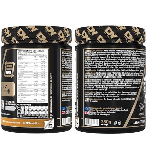 DY Nutrition – Blood & Guts Pre Workout Powder, 380g (Mango) – High Strength Preworkout with 350mg Caffeine, Citrulline Malate, Beta Alanine, Arginine AKG, L-Tyrosine, Vitamin B3 for Men & Women