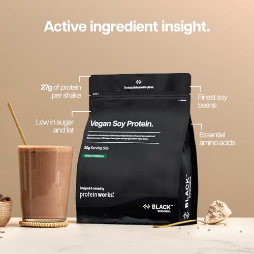 Protein Works | Vegan Soy Protein – Black Innovation, Premium Soy Protein Isolate, Low Fat, No Added Sugar, 27g Protein, 100% Plant-Based Nutrition, Vanilla Crème, 33 Servings, 1kg