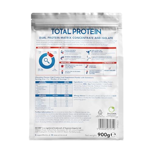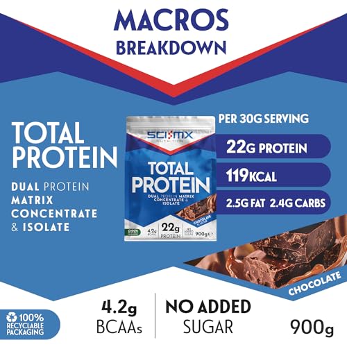 SCI-MX Total Protein – Dual Concentrate & Isolate Powder – Lean Muscle Development – Chocolate • No Added Sugar • 4.2g BCAAs • 900g