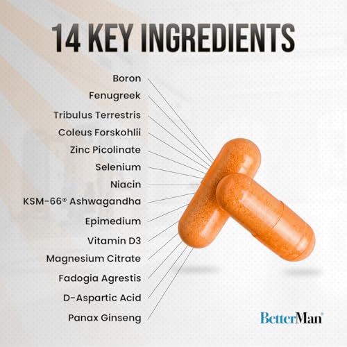 BetterMan Natural Testosterone Support – Men’s Wellness Powered by 14 Science Backed Ingredients Fenugreek Tribulus Fadogia Zinc Magnesium & Vitamin D3 – 3 Capsules Daily – Plant Based