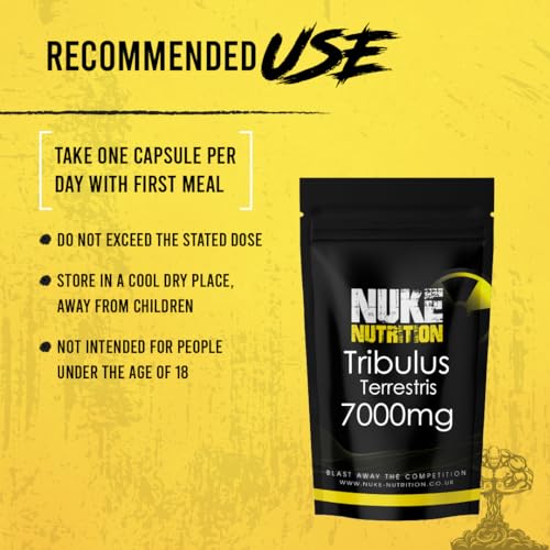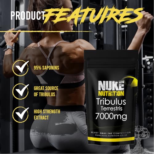 Nuke Nutrition Tribulus Terrestris 7000mg – 60 Capsules – Tribulus Terrestris High Strength Test Booster Pills for Men & Women – Increase Testosterone for Enhanced Muscle Growth, Strength & Endurance