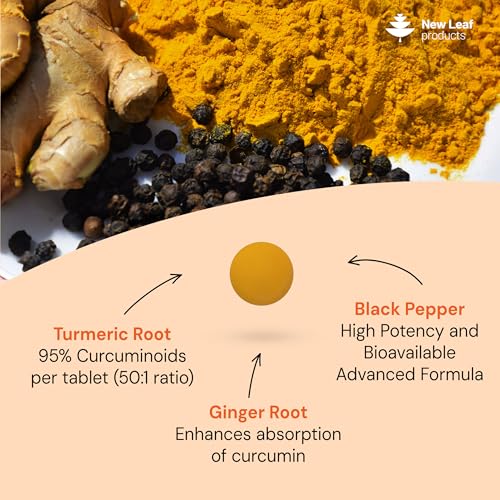 Turmeric Tablets 2600mg with Black Pepper & Ginger – 95% Curcumin Extract -180 Turmerics and Black Pepper Tablets (3 Months) High Strength Active Turmeric Supplements Not Capsules,by New Leaf