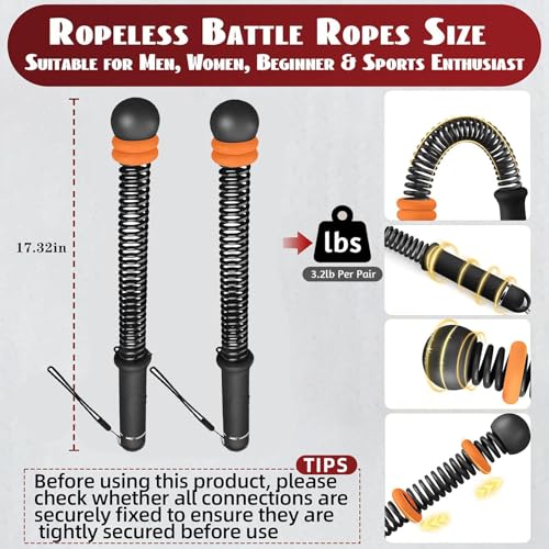 New Upgrade Third-Generation Ropeless Battle Ropes with Adjustable Weights,2 PCS Portable Quiet Cordless Battle Ropes for HIIT & Cardio Full-Body Workout Tool with Non-Slip Spiral Handles