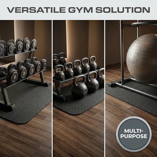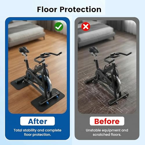 ✅ DOUBLE-SIDED GRIP FOR TOTAL STABILITY – Featuring a silicone-coated top and bottom, these mats lock your equipment in place and grip the floor securely. Perfect for hardwood, laminate, tile, or carpet, they eliminate slipping and shifting—so you can focus on your workout worry-free.