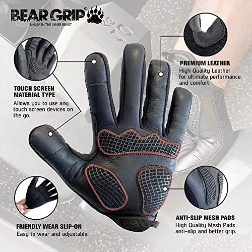 BEAR GRIP – Weight Lifting Gloves with Gel Padded Palms for Multi-Sport Workouts, Bodybuilding, Crossfit, Calisthenic, Cycling, Full Palm Anti Slip Protection
