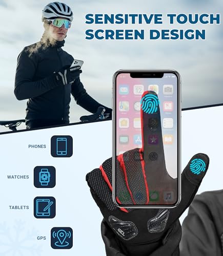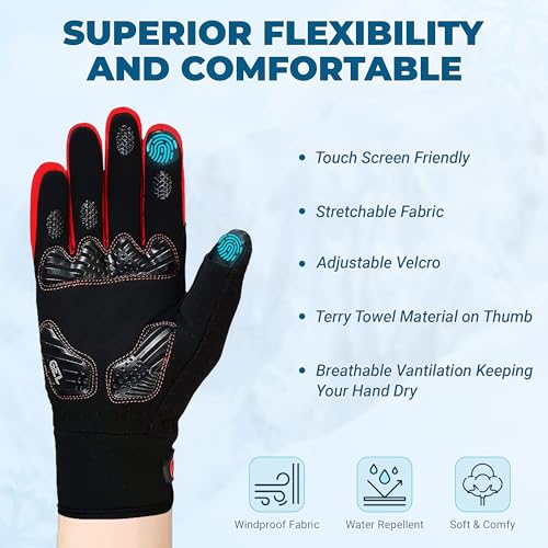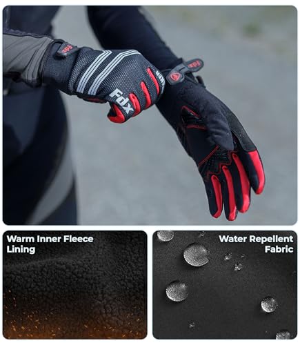 FDX Full Finger Winter Cycling Gloves – Warm Windproof, Mountain Bike Gloves Anti-Slip Padded Palm, Touchscreen, Breathable, Water Resistant MTB Racing and Running Mitts for Men Women