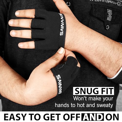SAWANS Gym Gloves Men Women Weight Lifting Training Fitness Padded Extra Grip Palm Protection Silicone Non-slip Breathable Four Finger Workout Gloves Hanging Pull ups Exercise