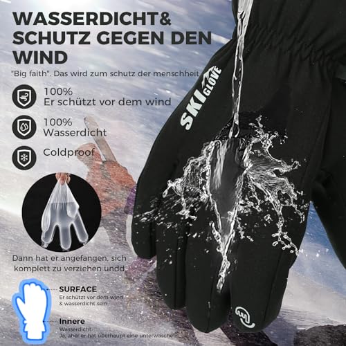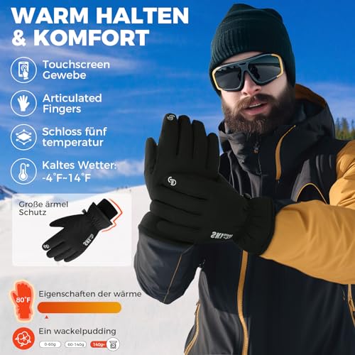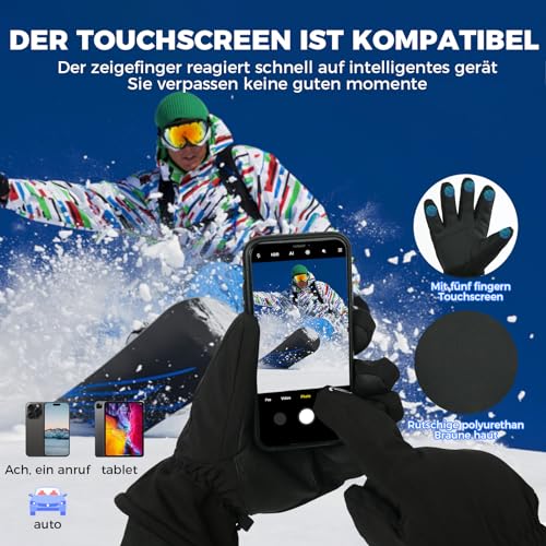 Ski Gloves, Waterproof Winter Gloves Men, Warm Gloves, Cycling Gloves for Men, 5-Finger Touchscreen Gloves