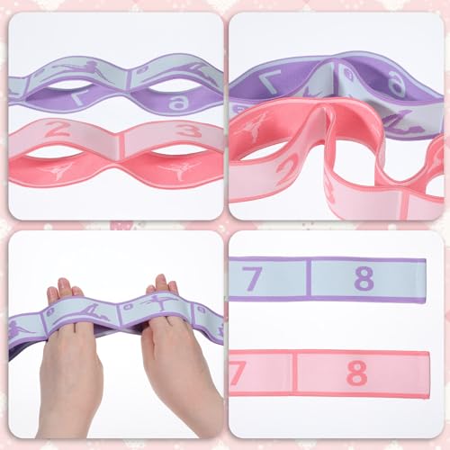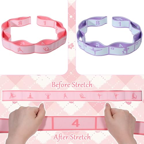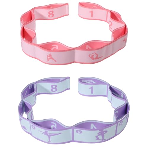 2 Pcs Elastic Yoga Stretching Strap with Loops 8-Loop Dance Stretch Band Adjustable Leg Stretch Strap Stretching Bands for Flexibility Multi-Loop Exercise Bands for Pilates, Latin and Yoga
