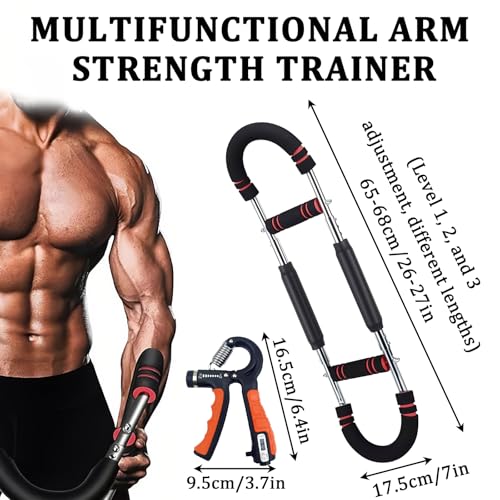 【Portable Full-Body Fitness Solution】Compact yet highly efficient, this U-shaped Arm Trainer engages multiple muscle groups including arms, chest, back, and shoulders. Combined with the targeted grip strengthener for hands, wrists, and forearms, it delivers a versatile, space-saving workout experience anywhere.