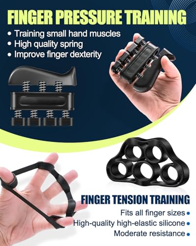 Grip Strength Kit: This 5-piece set includes an adjustable grip strengthener, grip ball, grip ring, finger pressure training device, and finger tension training ring. Made with durable materials, our grip strengthener allows you to target different areas of your hands, fingers, wrists, elbows, and forearms, helping you achieve maximum grip strength and improve overall hand and forearm strength