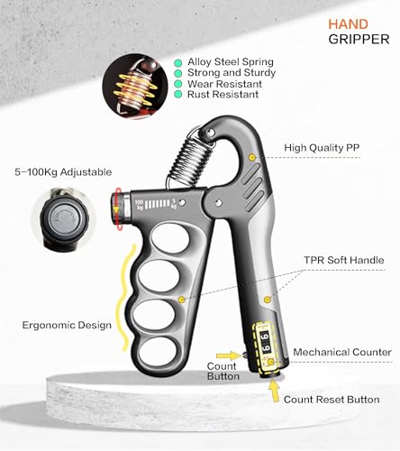 5-100 KG ADJUSTABLE RESISTANCE RANGE – The 5-100 kg adjustable resistance Grip Strengtheners are fully customizable to your resistance level, from beginner to advanced. This adjustable flexibility allows you to progress at your own pace. It’s a portable personal home gym grip strength training device