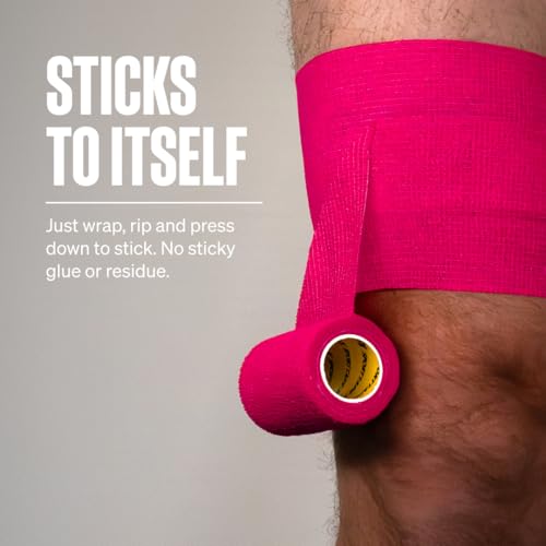 SPORTTAPE Self-Adhesive Cohesive Bandage, 7.5cm x 4.5m, Pink – Compression & Vet Wrap for Dogs, Horses, Sports Stretch Tape for Football, Ankles, Joints, Wrists and Sock Tape – Single Roll